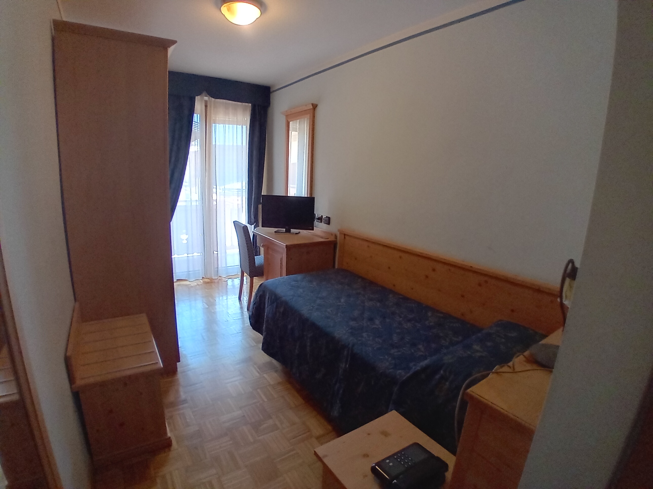 Graziosa camera in stile alpino realizzata in legno di abete, con una superficie di circa 12 mq, ideale per garantire un soggiorno confortevole e rilassante.