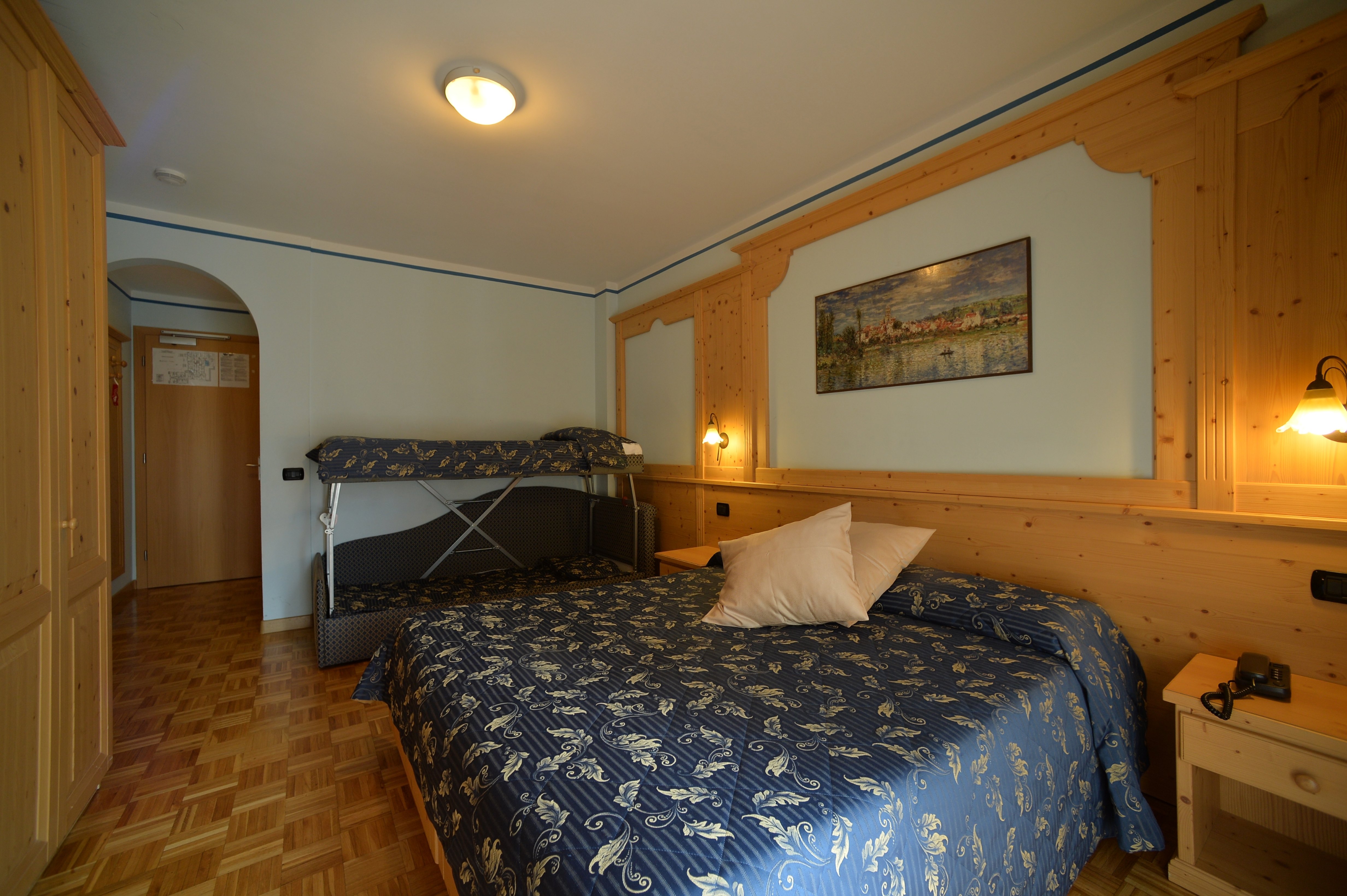 Questa accogliente stanza, realizzata in legno di abete e caratterizzata da uno stile alpino tipico delle tradizioni montane, offre un ambiente caldo e confortevole con una superficie che varia da 20 a 22 mq. Perfetta per famiglie che desiderano trascorrere un soggiorno rilassante e piacevole, la camera è dotata di tutti i comfort necessari per garantire un'esperienza di soggiorno unica.