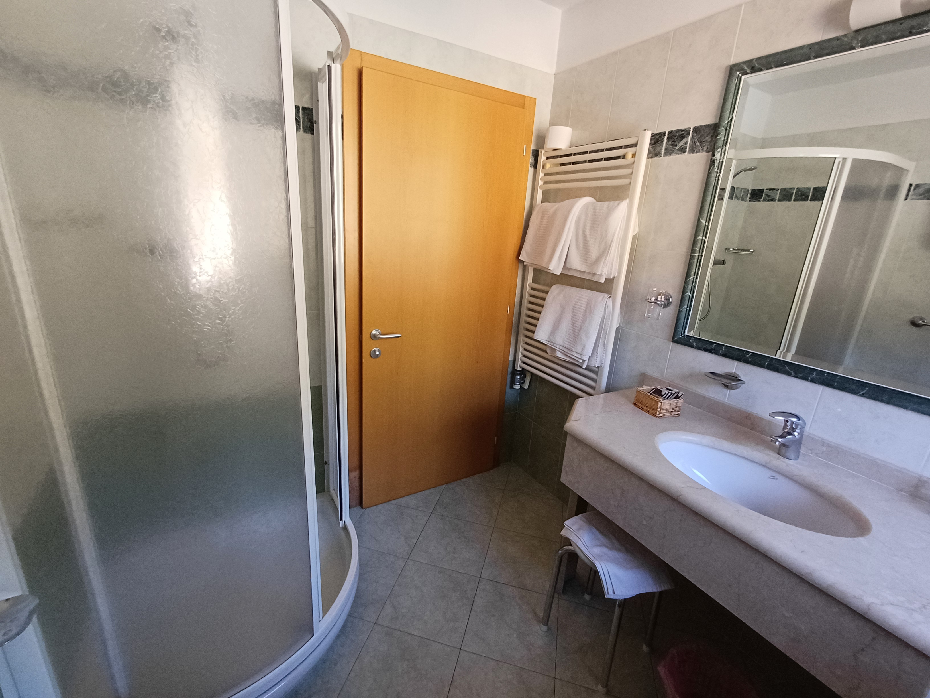I servizi privati includono un bagno con doccia e WC, progettati per il massimo comfort.
