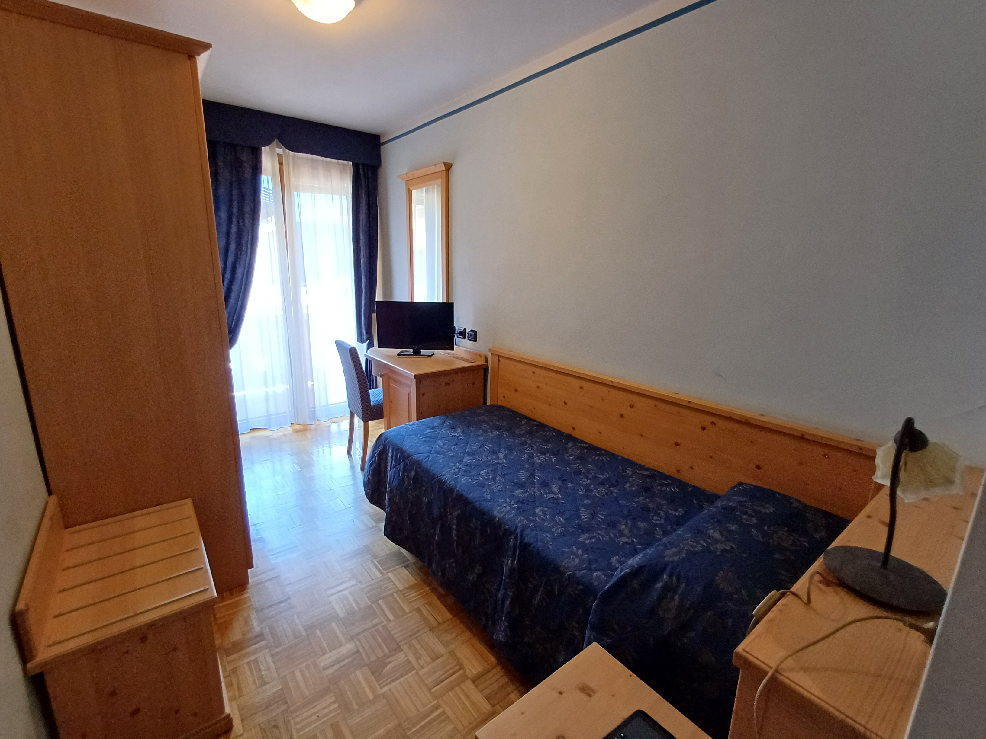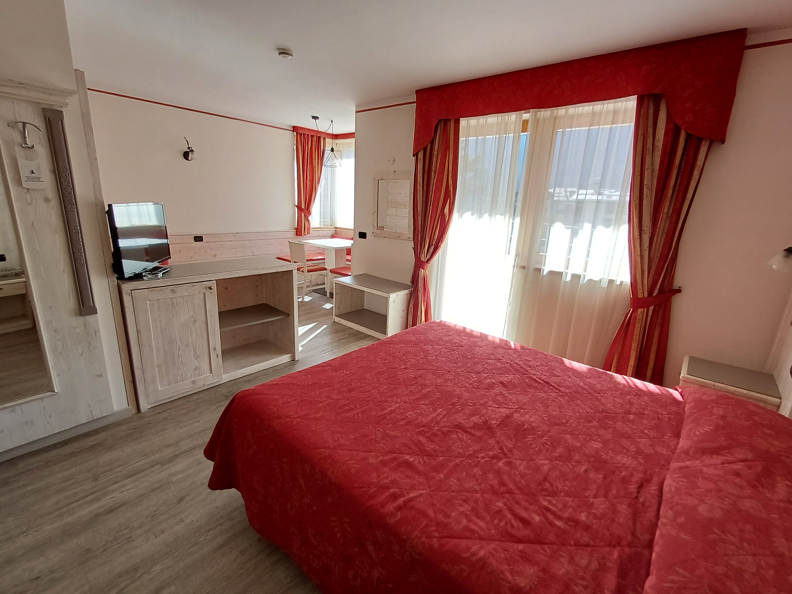 Questa accogliente stanza, realizzata in legno di abete e caratterizzata da uno stile alpino tipico delle tradizioni montane, offre un ambiente caldo e confortevole con una superficie che varia da 20 a 22 mq. Perfetta per famiglie che desiderano trascorrere un soggiorno rilassante e piacevole, la camera è dotata di tutti i comfort necessari per garantire un'esperienza di soggiorno unica.